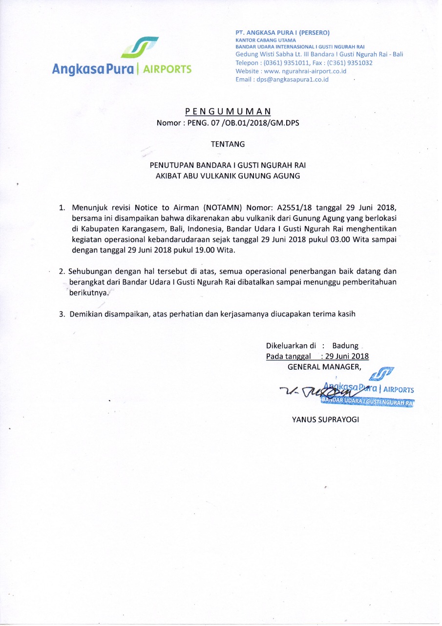 Sources: http://bali.tribunnews.com/2018/06/29/breaking-news-bandara-ngurah-rai-bali-ditutup-abu-vulkanik-gunung-agung-capai-23-ribu-feet?page=all